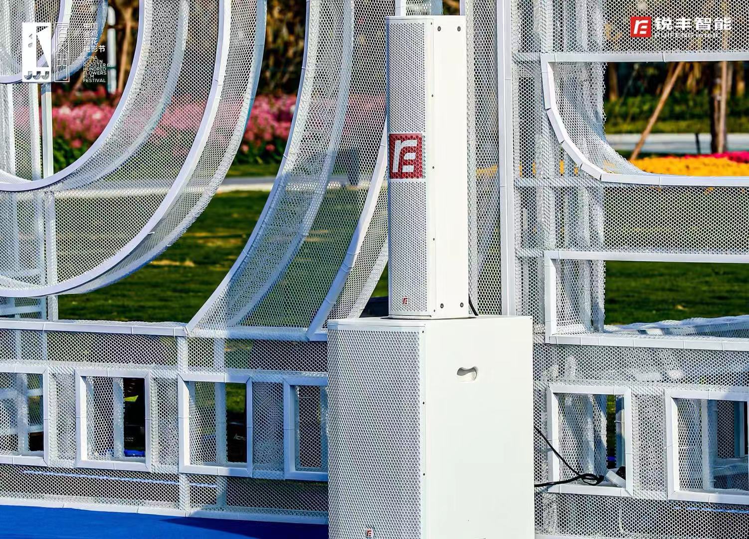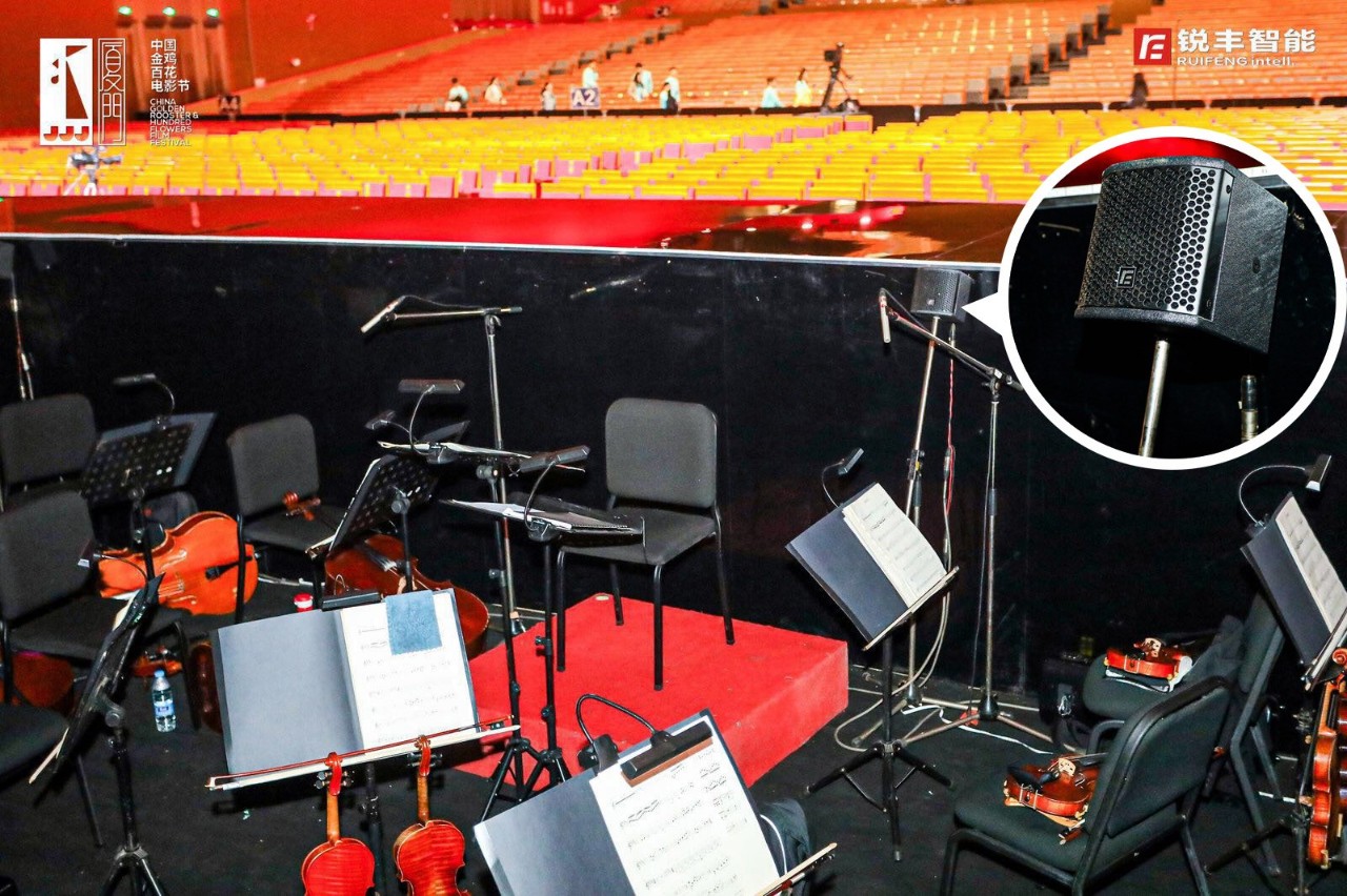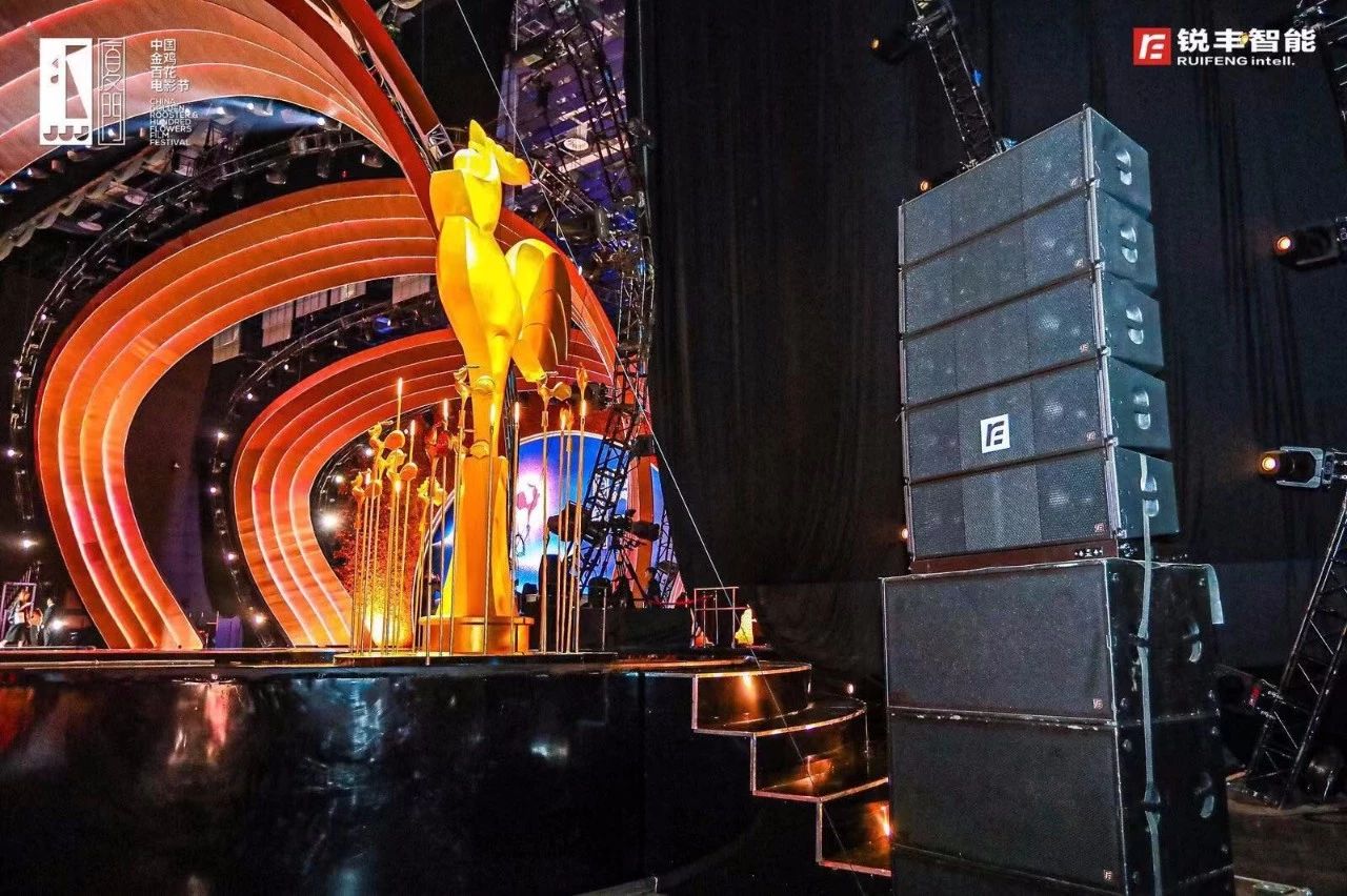 由著名音响设计师——宋多多老师担任音响总设计,音响总监为宋仁一老师。由锐丰智能为音响技术团队,红毯仪式现场采用了"RF"—ML15SA&L7有源音柱扬声器系统,颁奖典礼现场采用了"RF"—GTS线阵列扬声器作为主扩声,NOVI线性音柱音箱、MH三分频同轴点声源扬声器系统、TX多功能系列扬声器、以及周边设备等产品。