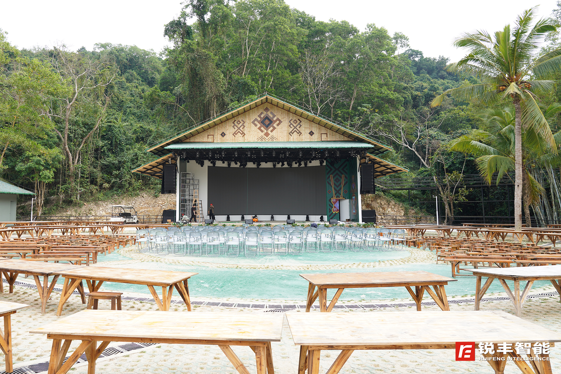 为了进一步开发景区旅游资源,提升游客体验,槟榔谷对景区进行分期的升级改造。锐丰智能为槟榔谷提供扩声系统解决方案,选用了VK310+线阵列扬声器系统、WA218双18寸超低频音箱、TX系列多功能音箱、QL7R会议系统以及周边产品等设备。